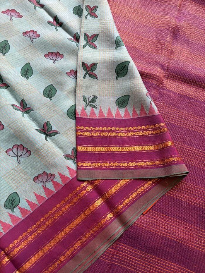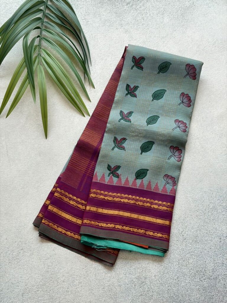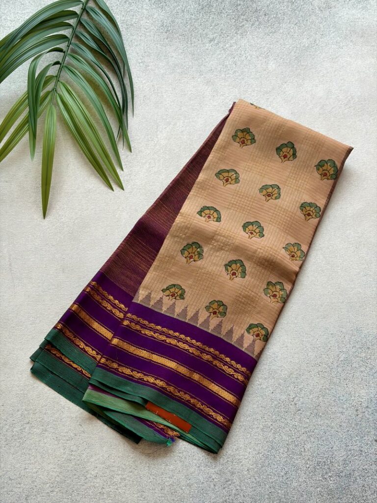 Multiple Hues – Hand-block Printed Kanchipuram Silk