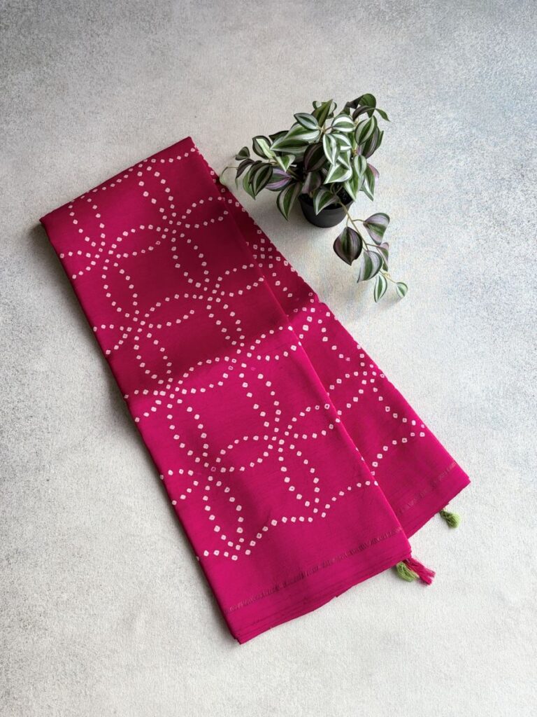 Magenta Pink with Pastel Green Hand-knotted Bandhani on Kanchipuram Silk