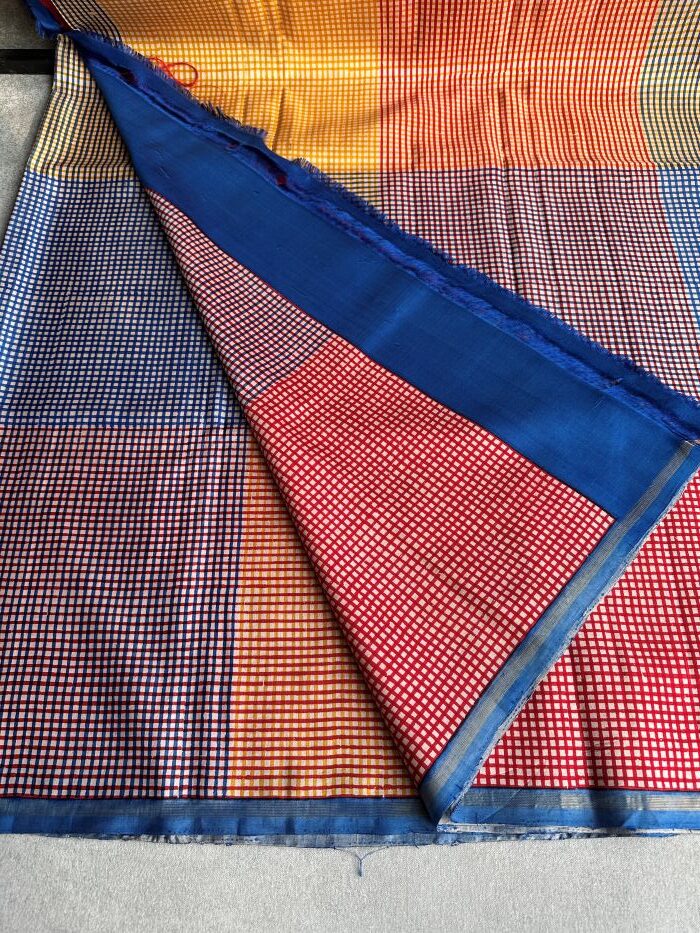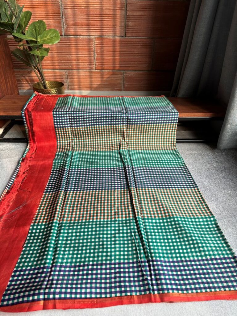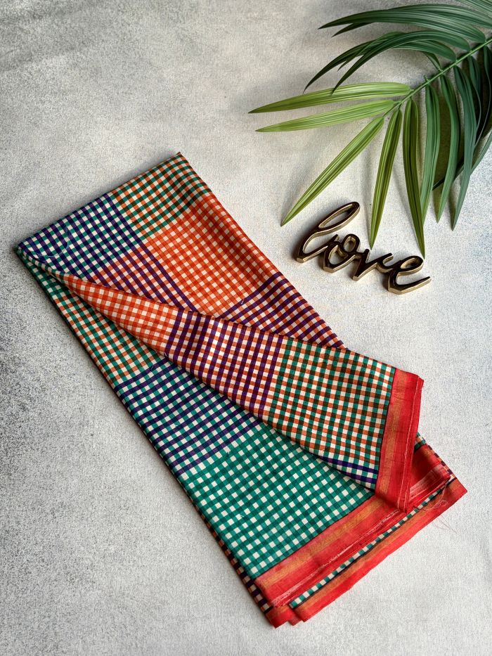 Vibrant Checks – Hand-block Printed Kanchipuram Silk