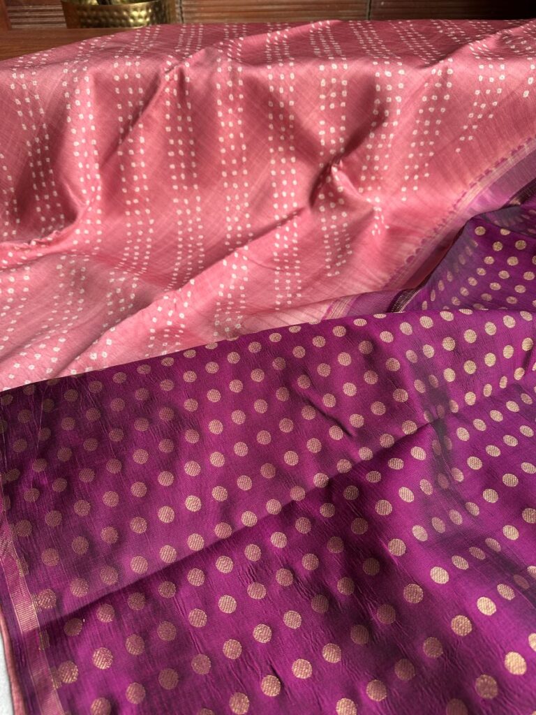 Onion Pink with Wine Hand-knotted Bandhani on Kanchipuram Silk