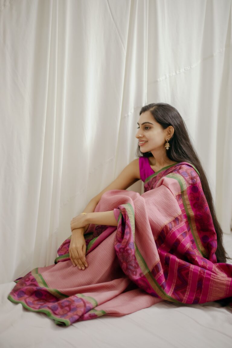 Magenta Gadwal Silk with Pastel Pink Zari Rettapet Borders & Hand-Drawn Kalamkari