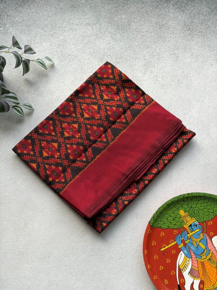 Red Cambodian Ikkat Handwoven Mulberry Silk