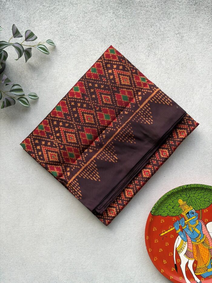 Brown Cambodian Ikkat Handwoven Mulberry Silk