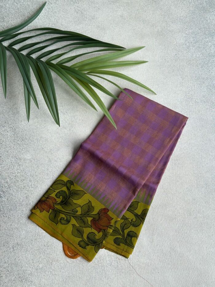 Hand-painted Kalamkari on Thazhampoo Korvai Kanjivaram Silk