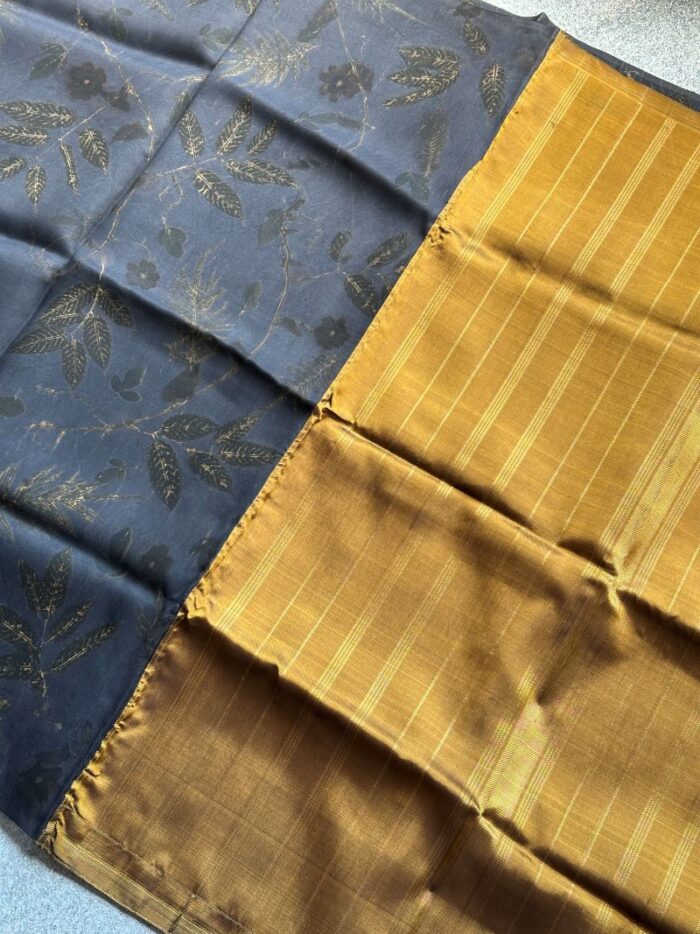 Black Eco Printed Organza Silk with Kanchi Pallu