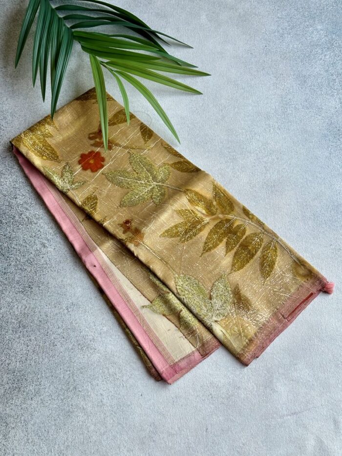 Cream & Beige Eco-printed Kanchipuram Silk