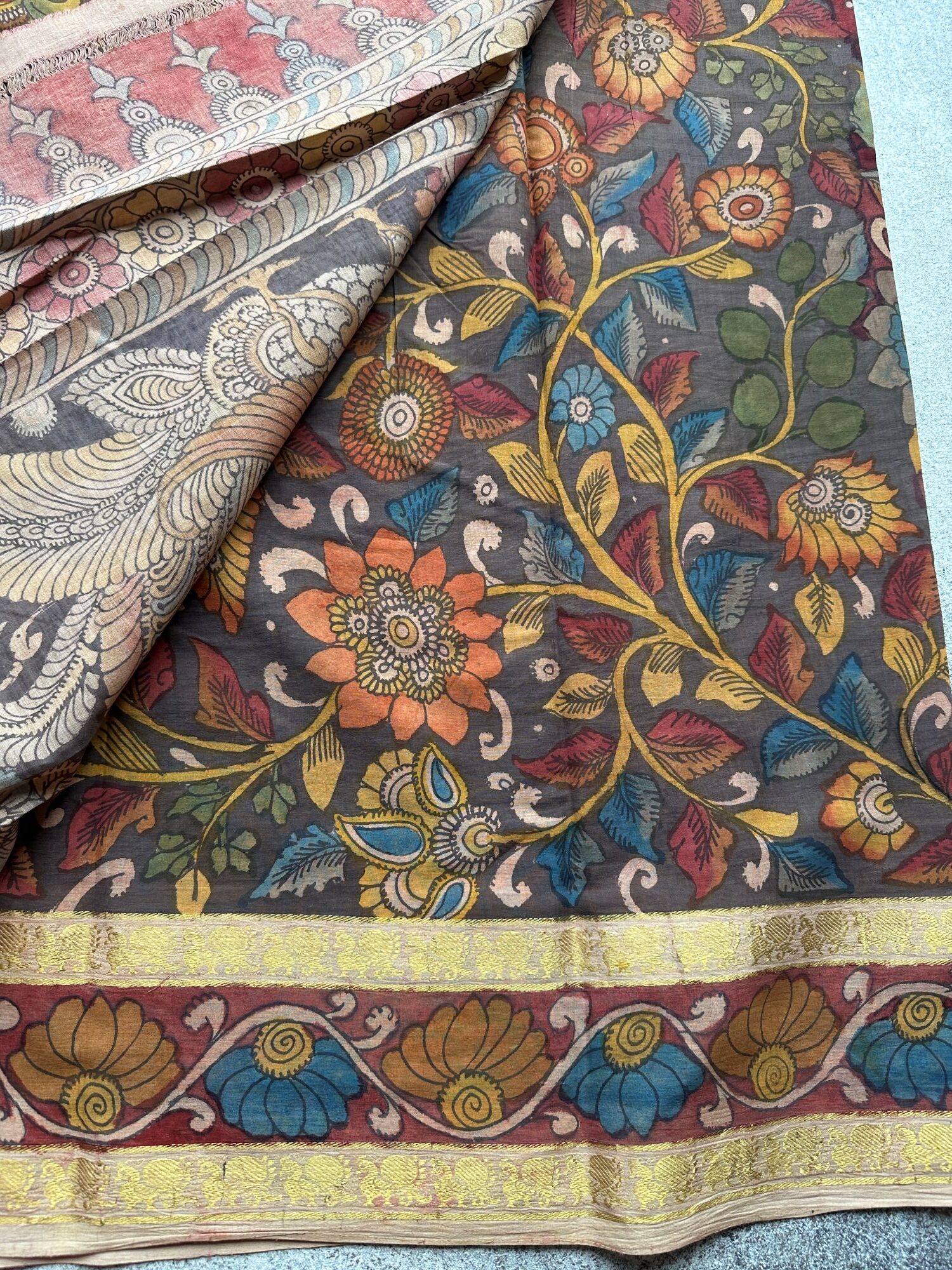 Peacocks, pallu, and Kalamkari magic—Madurai cotton reimagined with timeless artistry.