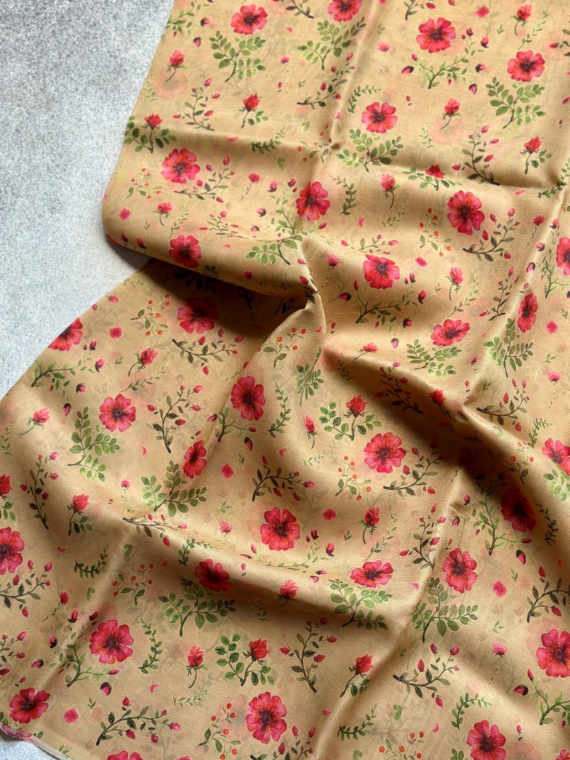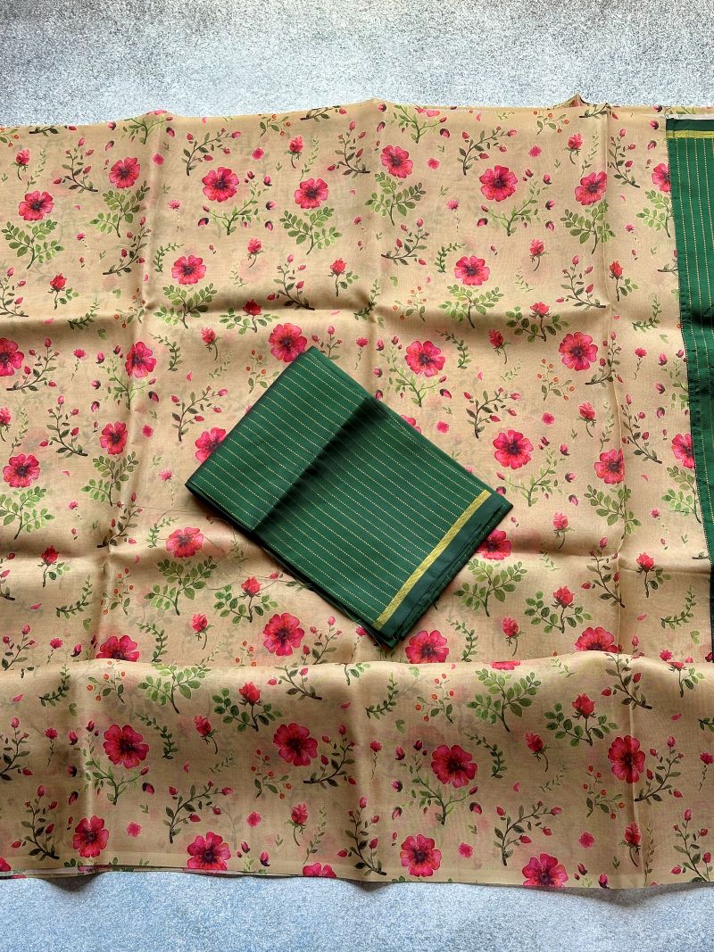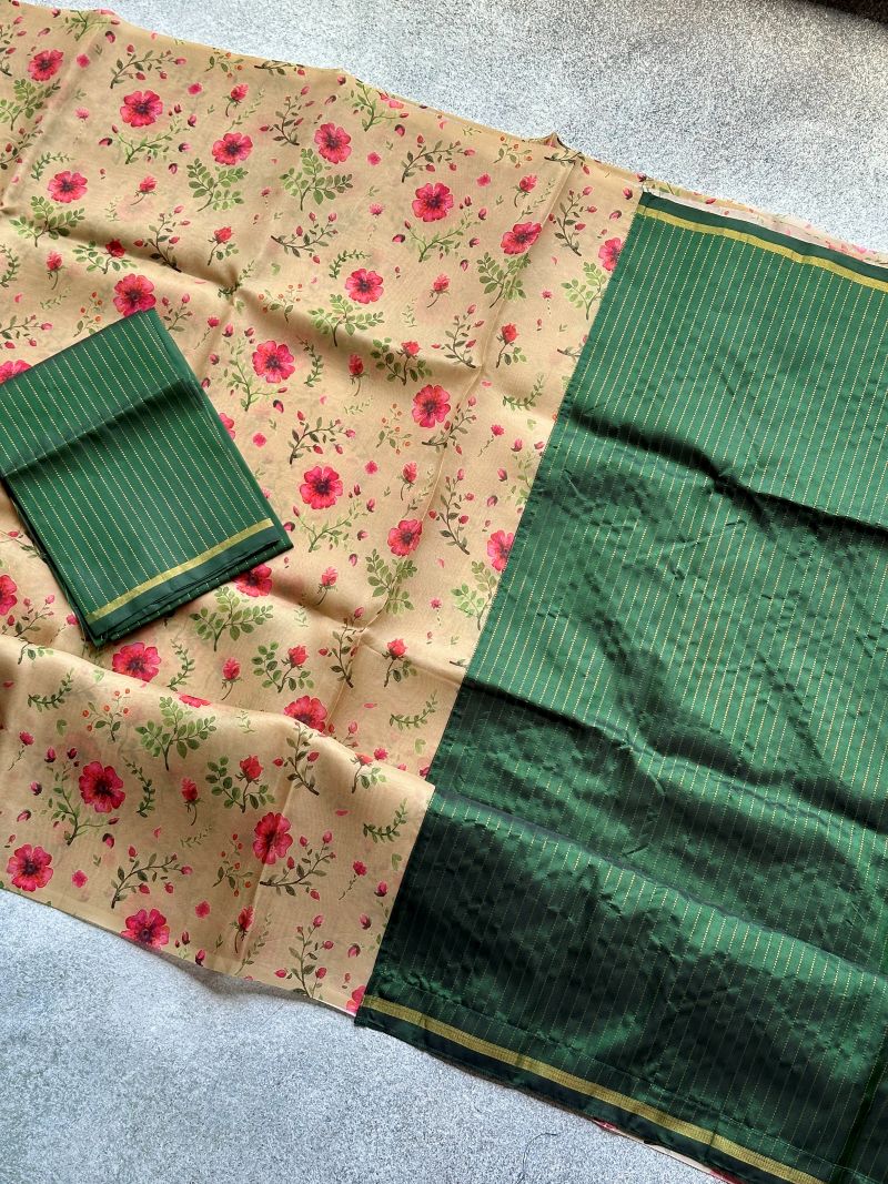 Breezy cream organza with soft pink florals — where elegance flows like poetry.