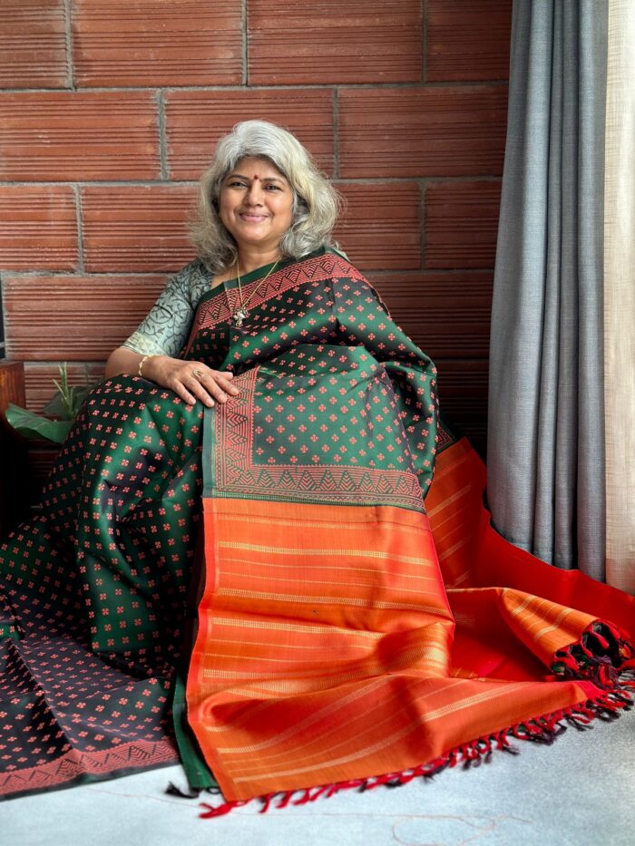 Disclaimer: The sarees on our website are handcrafted by skilled artisans using traditional techniques. As a result, each saree is unique and may have slight variations or imperfections in colour, weave, or design. These are not defects, but rather the natural beauty and charm of handmade products. We request you to appreciate and embrace these variations as a mark of authenticity and quality. Thank you for choosing our sarees.