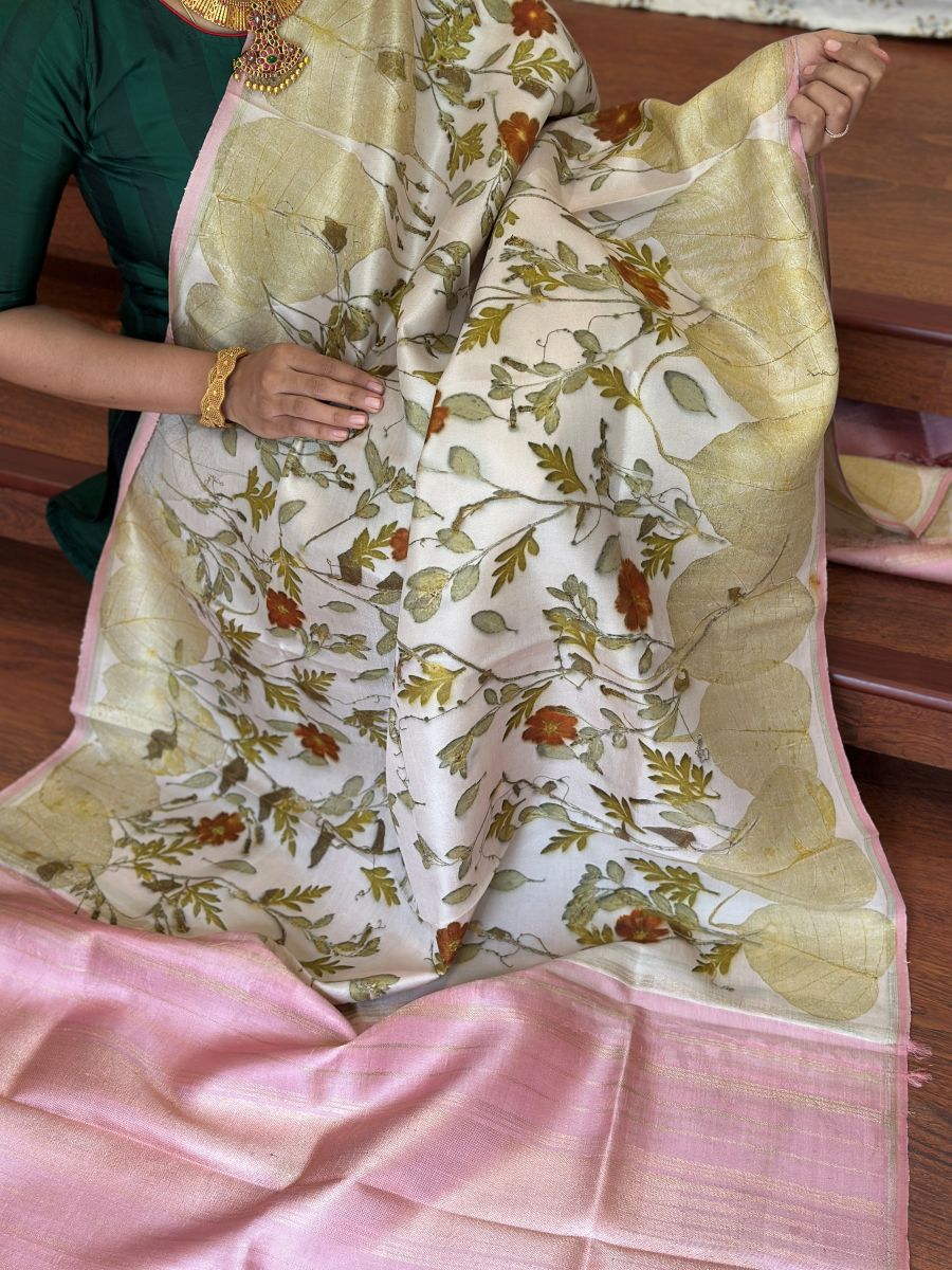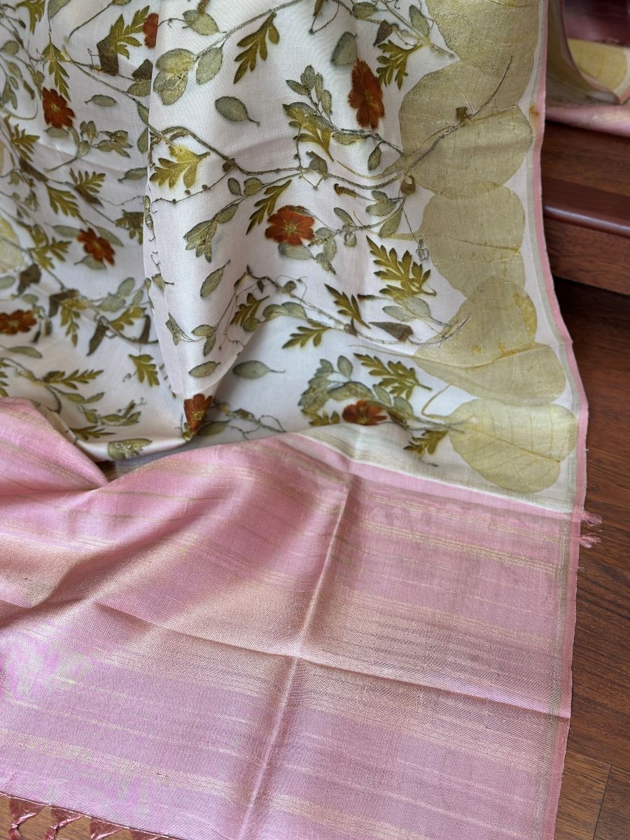 It grows, blooms, and gently finds its way onto silk like this eco printed Kanchi dupatta, wrapped in soft zari light. 💖