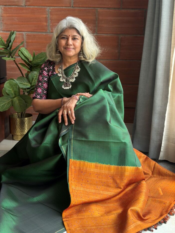 Disclaimer: The sarees on our website are handcrafted by skilled artisans using traditional techniques. As a result, each saree is unique and may have slight variations or imperfections in colour, weave, or design. These are not defects, but rather the natural beauty and charm of handmade products. We request you to appreciate and embrace these variations as a mark of authenticity and quality. Thank you for choosing our sarees.