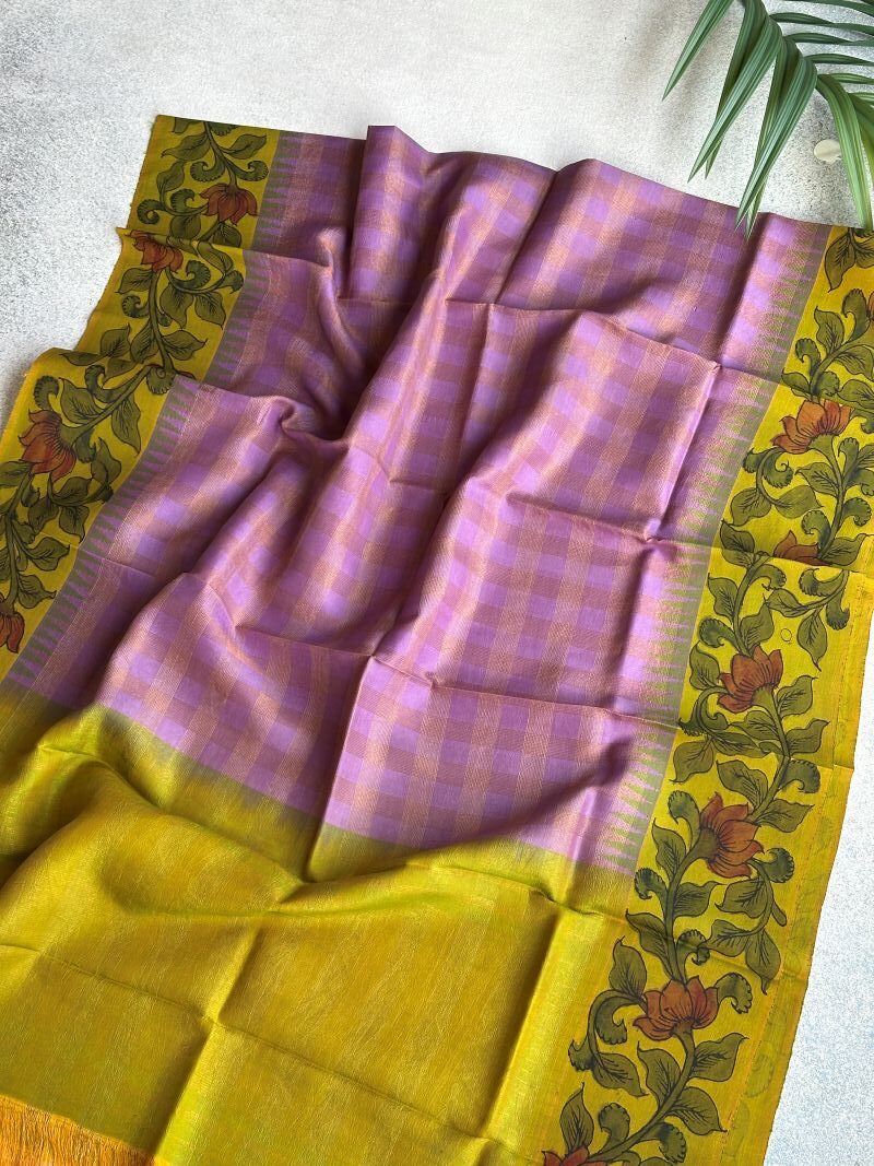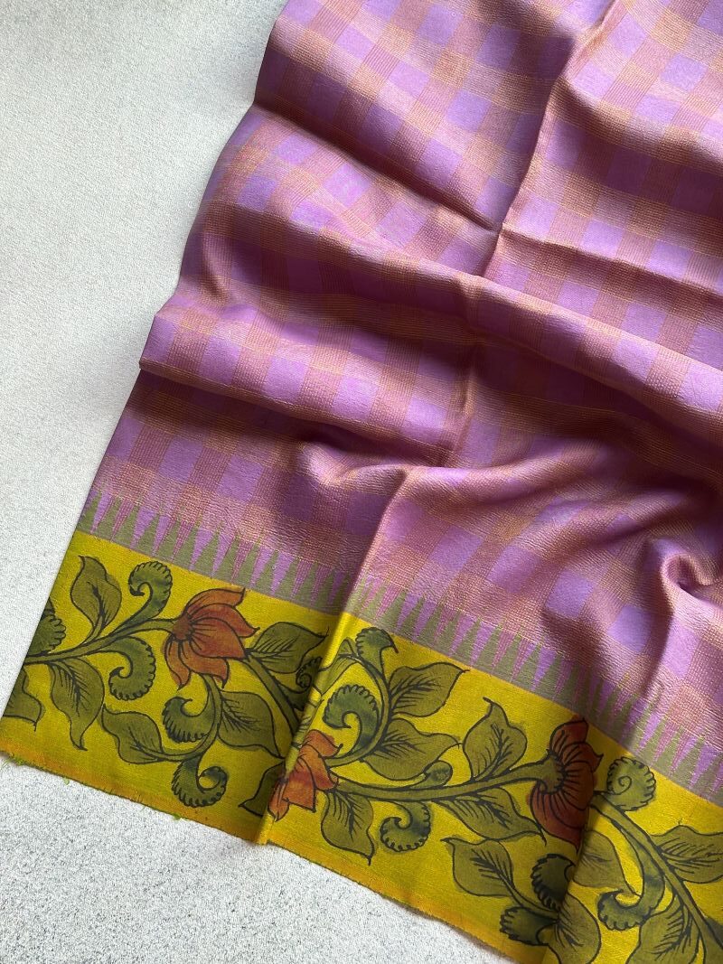 🌸 Where shimmering silk meets painted borders—Kalamkari on Gadwal becomes a canvas of tradition and grace.