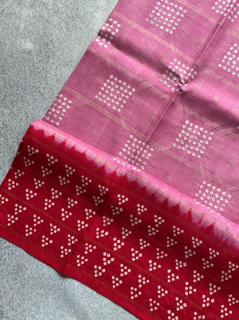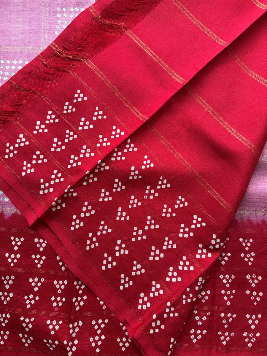 Pastel Pink with Red Hand-knotted Bandhani on Kanchipuram Silk