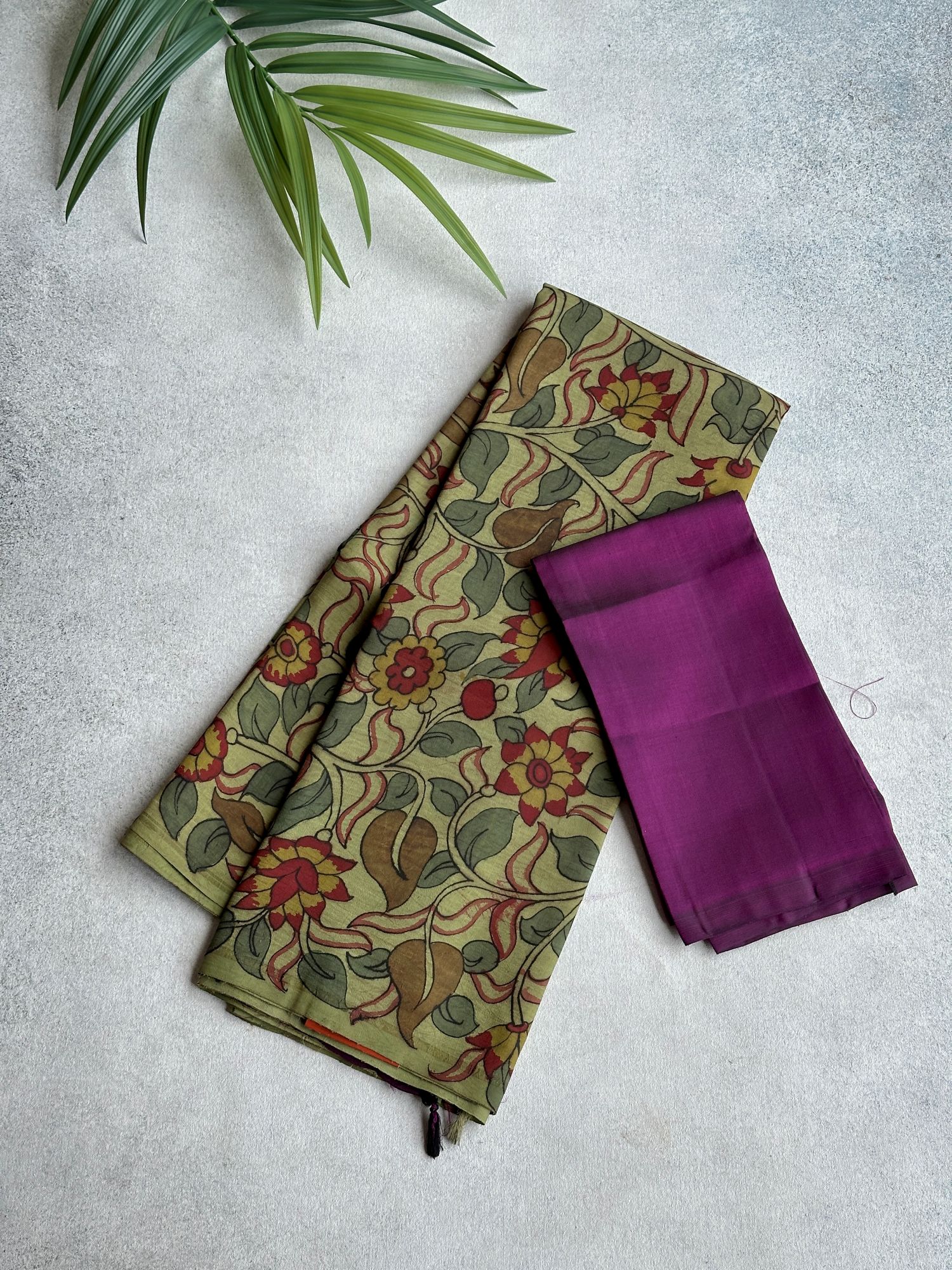 Blouse: Matching blouse with zari selvedge.
