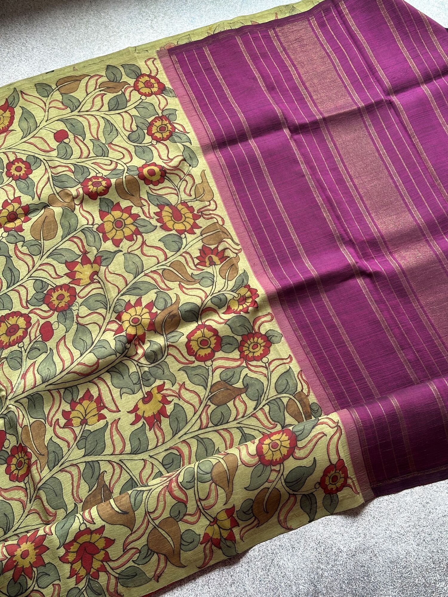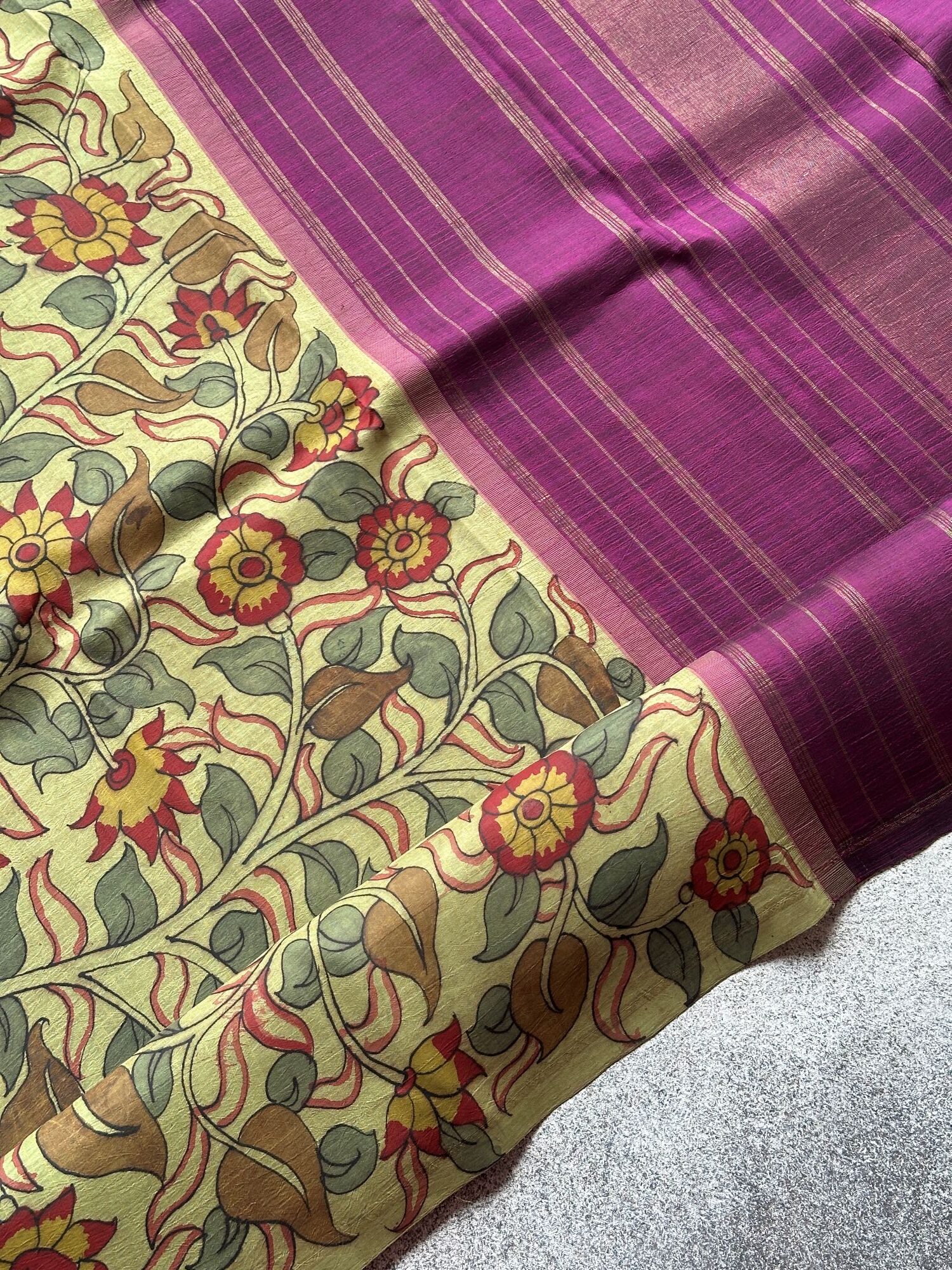 Pastels meet art, wine meets zari — festive elegance painted in Kanchi silk. 🌿