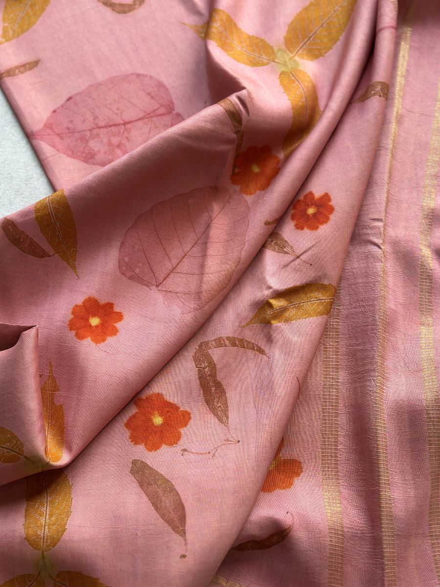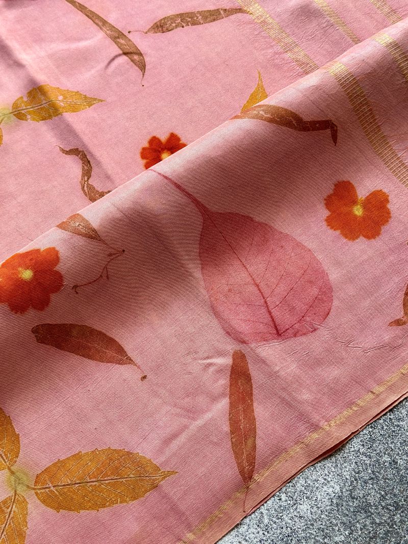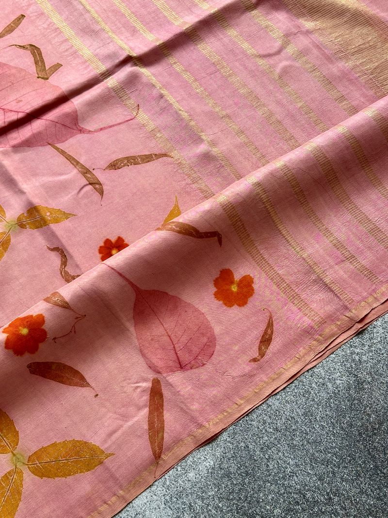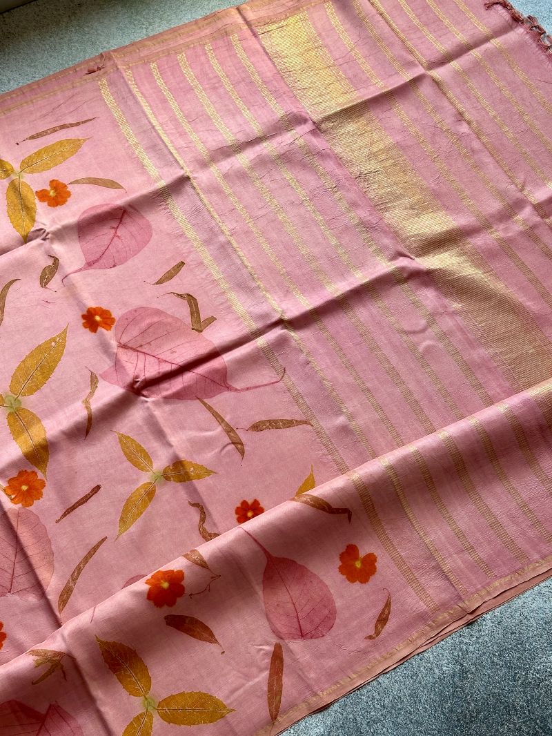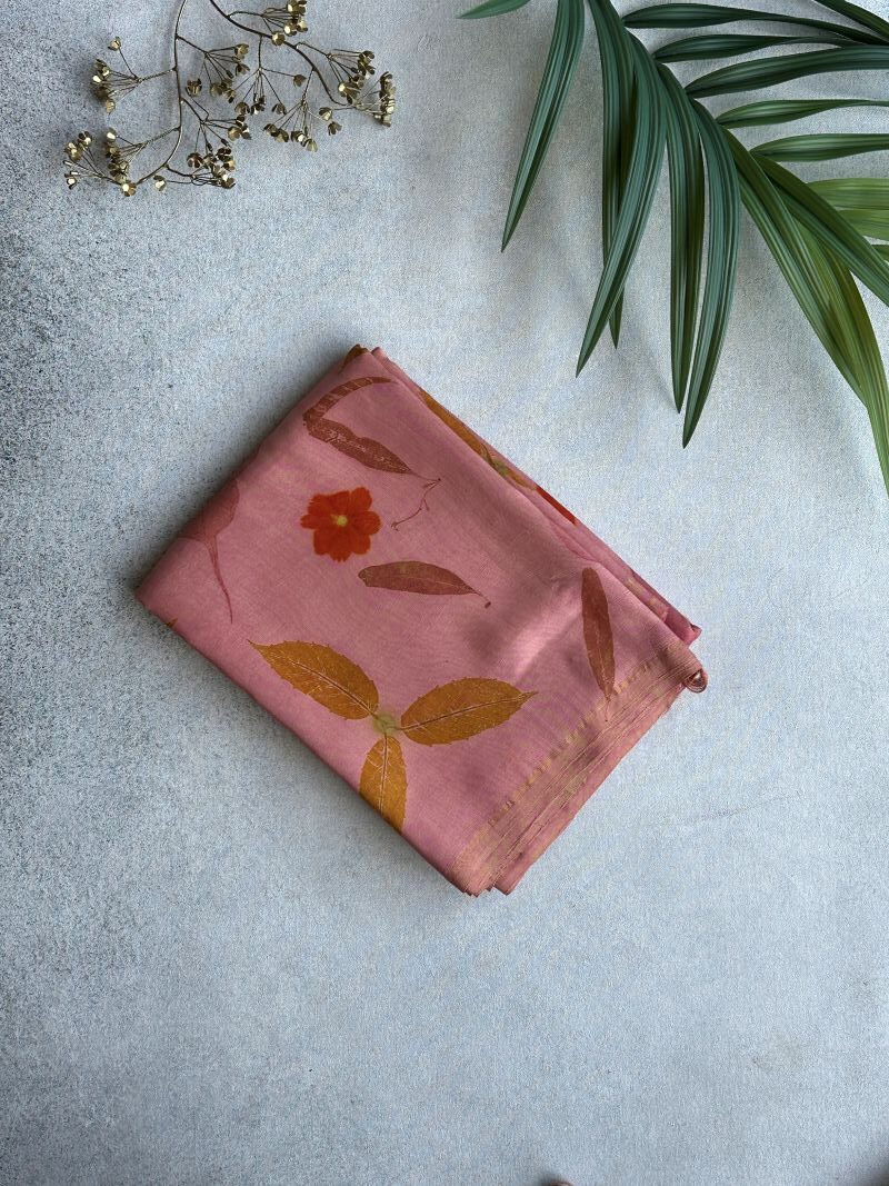 Pastel Pink Eco-printed Kanchipuram silk