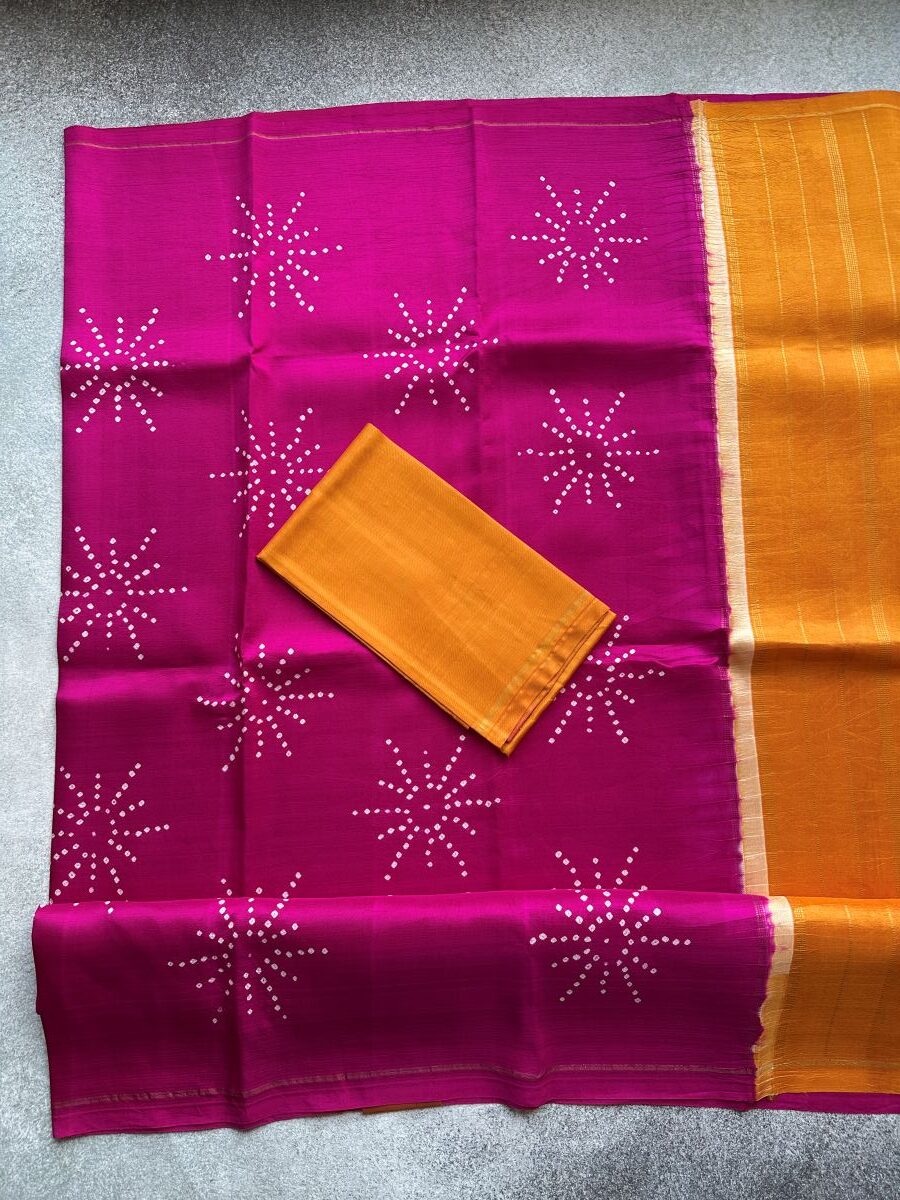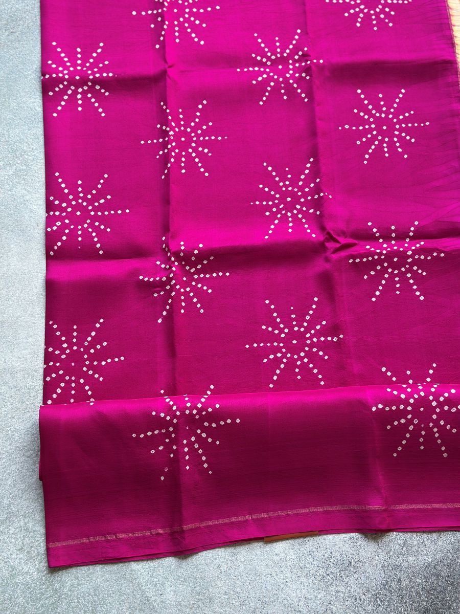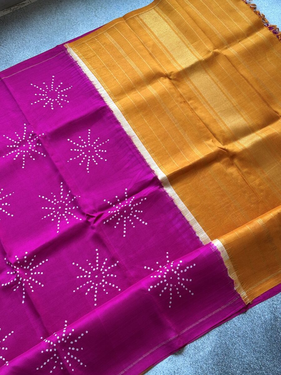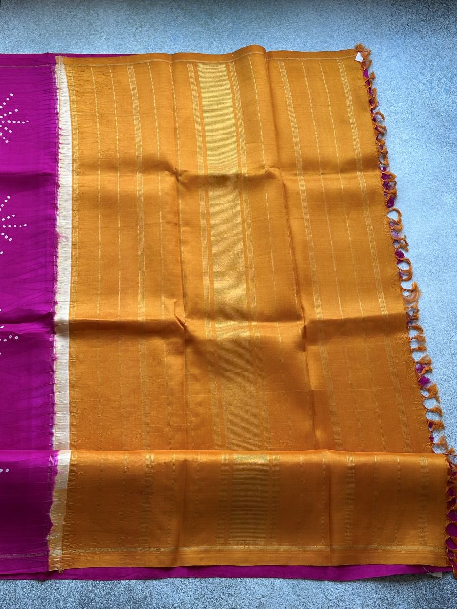 Wine & Mustard Hand-knotted Bandhani Kanchipuram Silk