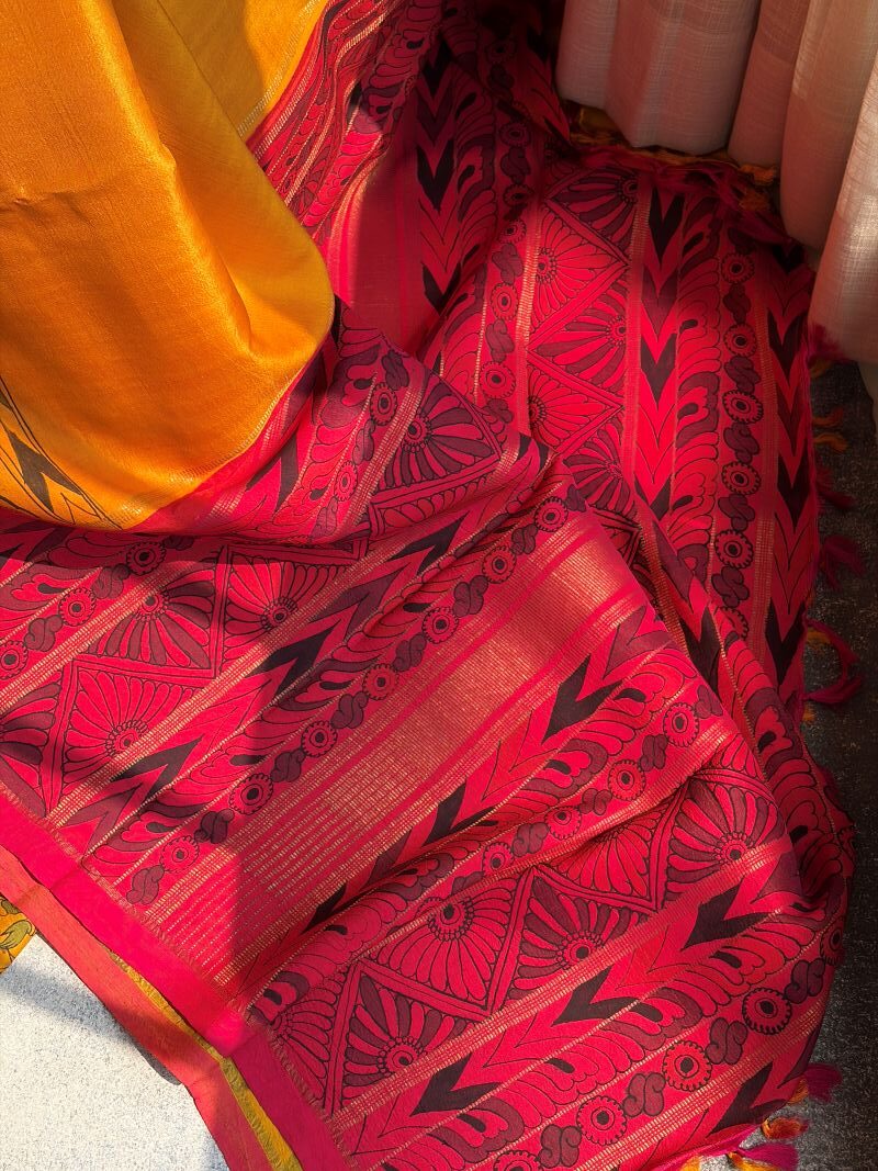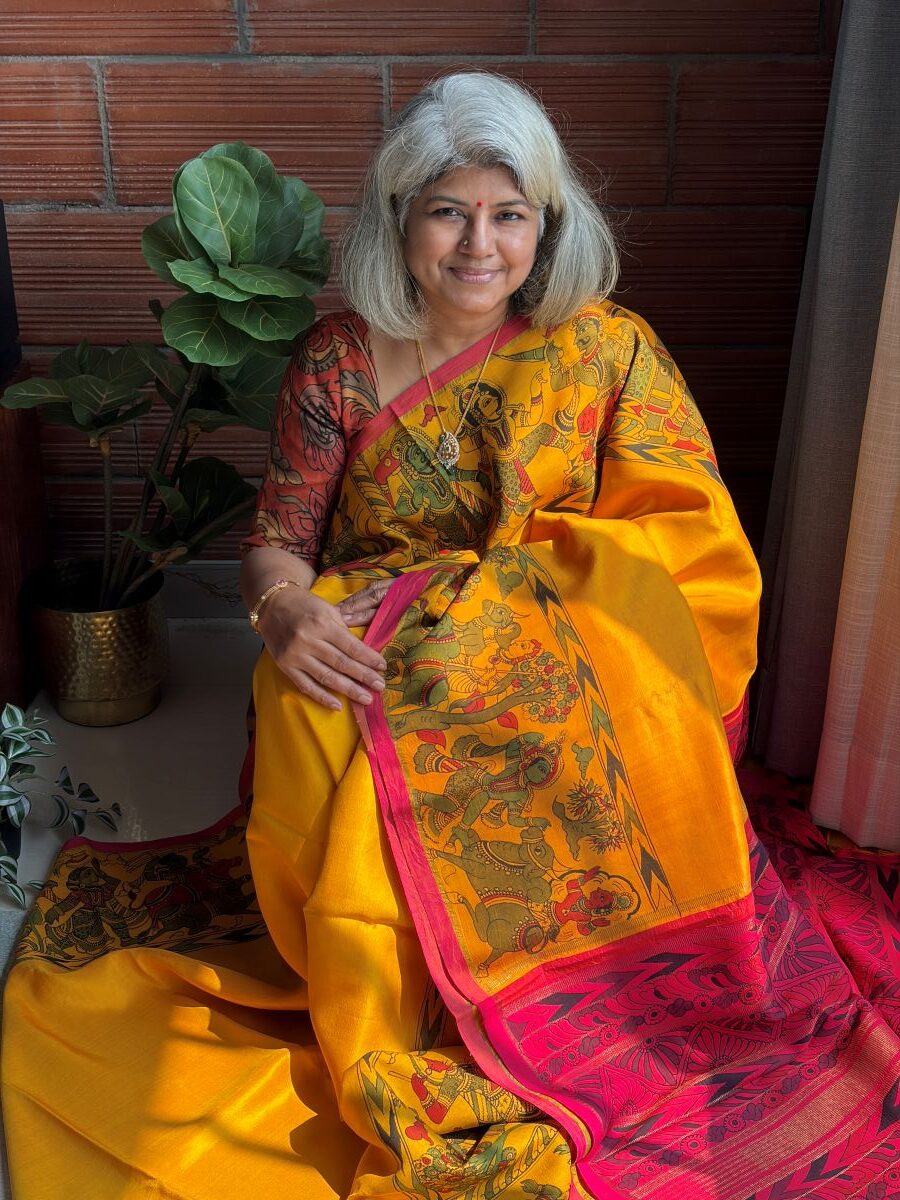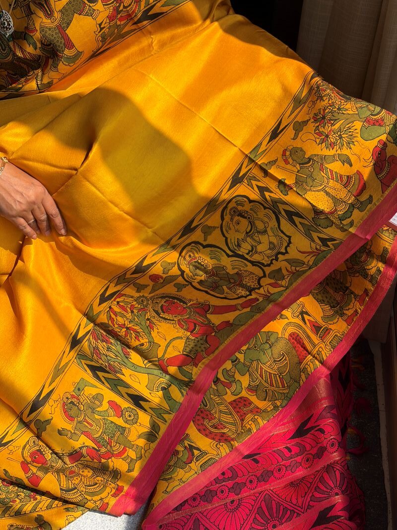 Yellow – Hand-Drawn Kalamkari Kanchipuram Silk